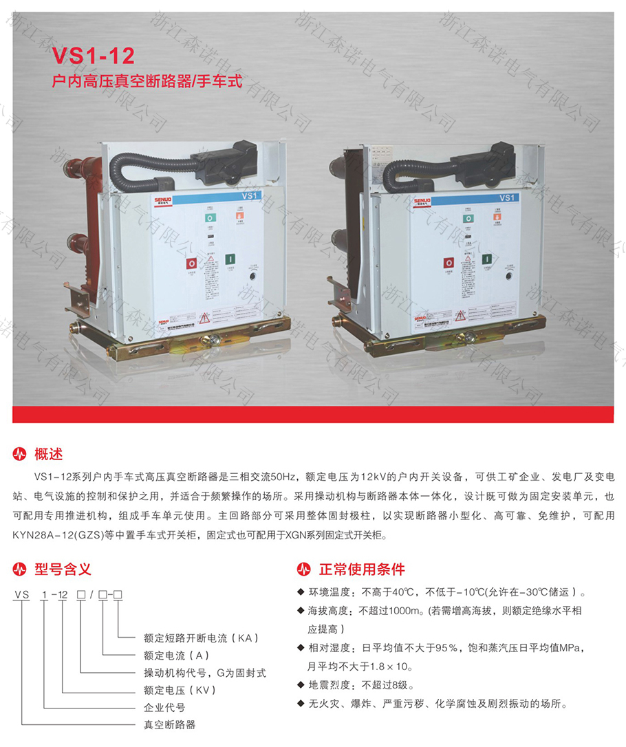 VS1-12户内高压真空断路器/固定式