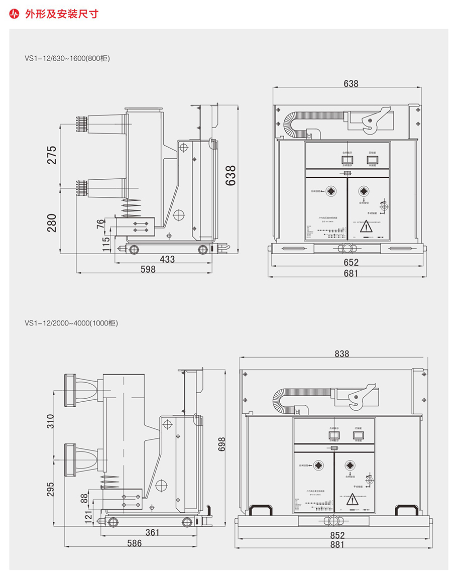VS1-12户内高压真空断路器/侧装式